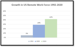 When we assess remote work in the aggregate what are we left with? The primary conclusion is that remote work is here to stay. While we cannot say if remote work will settle at 40% or 50% of the workforce or at some other level, we can be reasonably assured it will not drop back to pre-2000 levels which were already significant. It is also clear that companies will take a variety of approaches to this from allowing limited remote work to embracing full remote work for the entire staff thereby driving aggregate remote working upwards.
